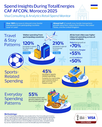 While the tournament unfolded, that sense of movement extended beyond the stadiums. Fans traveled across borders, organized viewing experiences, and created spontaneous communities around the game. The momentum was visible. All host cities recorded higher inbound spending across visitor markets, with Rabat leading at +70%, Tangier at +55%, and Casablanca at +50%. What happened on the pitch clearly translated into energy across host cities.