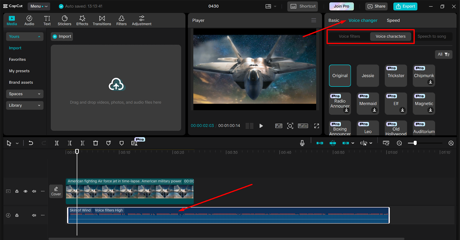 To add a voice changer effect in CapCut Desktop, first open the CapCut app on your computer and start a new project. Then, import your flight simulation video by clicking on “Import” and selecting the file you want to edit. Once your video is loaded, drag it onto the timeline at the bottom of the screen.