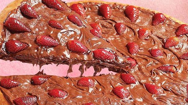 Chocolate on pizza? Yum yum yum! Chocolate lovers would definitely love this, especially when it topped with strawberries; you know how well those two go together.