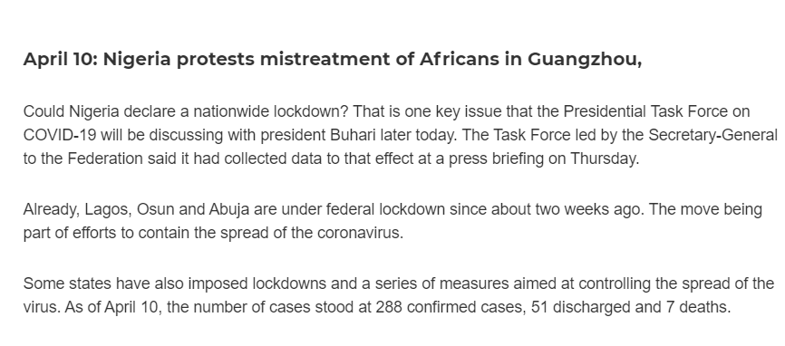 As part of the efforts by the Nigerian Government to stop the spread of COVID-19, is there going to be a nationwide lockdown? We’ll know after the meeting today with President Buhari.