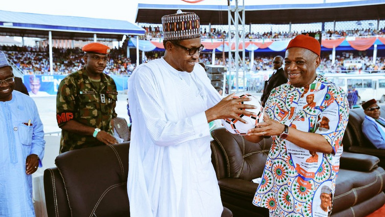 Between 2016 and 2019, while this man still had a case with the EFCC, he was out and about switching parties and campaigning for the future second-term presidency of Muhammadu Buhari. Look how happy they look here: