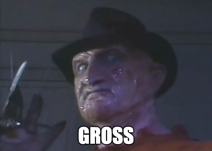 Maybe it’s against his personal code. Maybe it grosses him out. I don’t know. What I do know is that Freddy has NEVER (in any of the 200 movies about him) attacked a naked sleeper. That’s a fact.