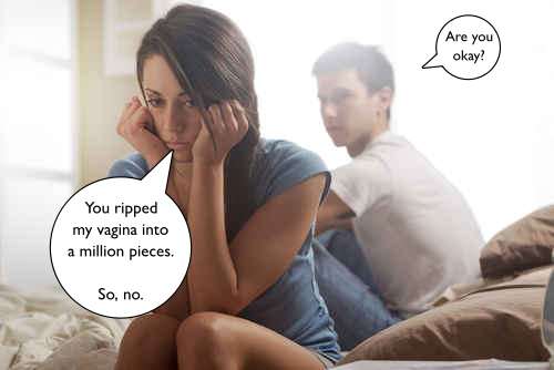 7) Both parties falling asleep immediately after without bothering to clean up.