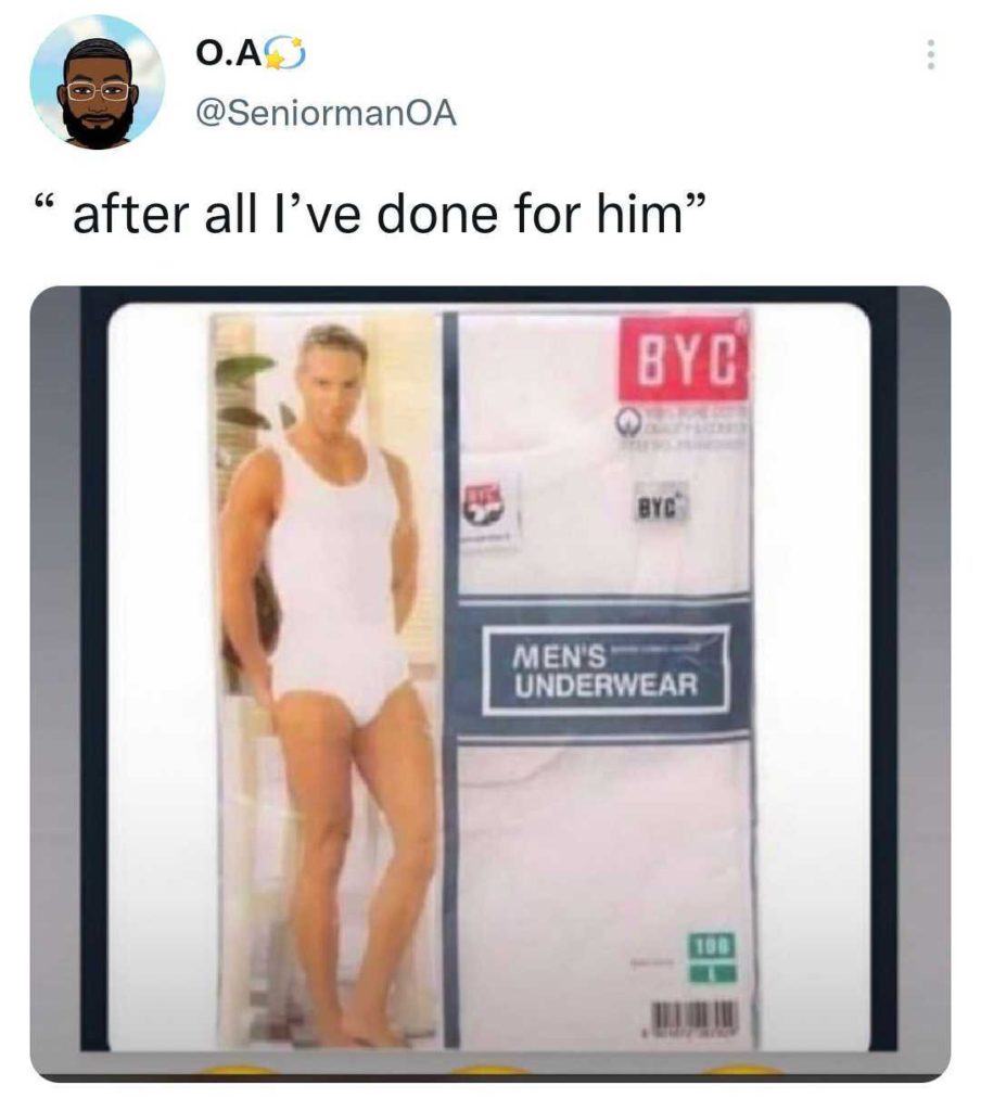 Boxer Shorts: Nigerian men deserve all the singlets and boxer shorts they get. Some of them kuku don’t bother washing us.