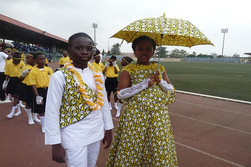 Usually at the front of the march-past parade, waving their hands and feeling fly in their house colours.
