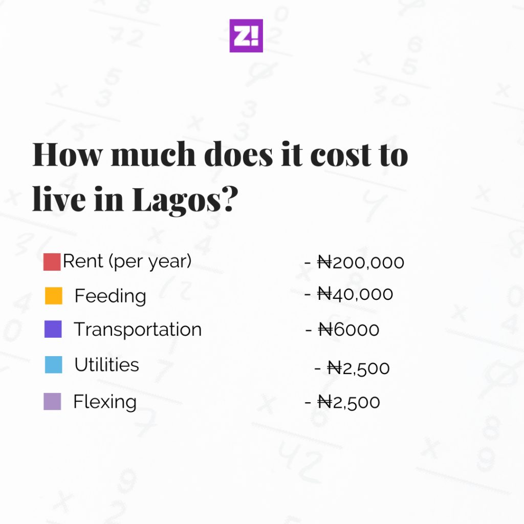 Accommodation: ₦500k. I have only had my place for less than a year. It’s a 2-bedroom apartment I share with a flatmate.