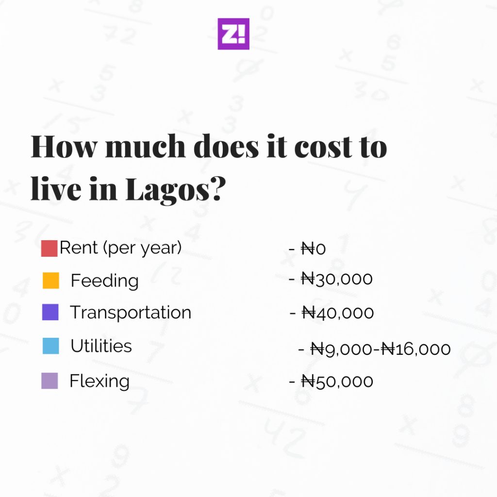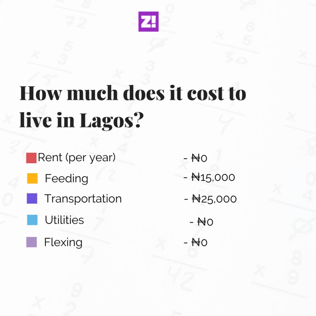 Accommodation: Haha, I live with my folk in a 4-bedroom apartment at Ogba. The average cost of rent for similar apartments in my estates ranges from ₦1.3m to ₦1.5.