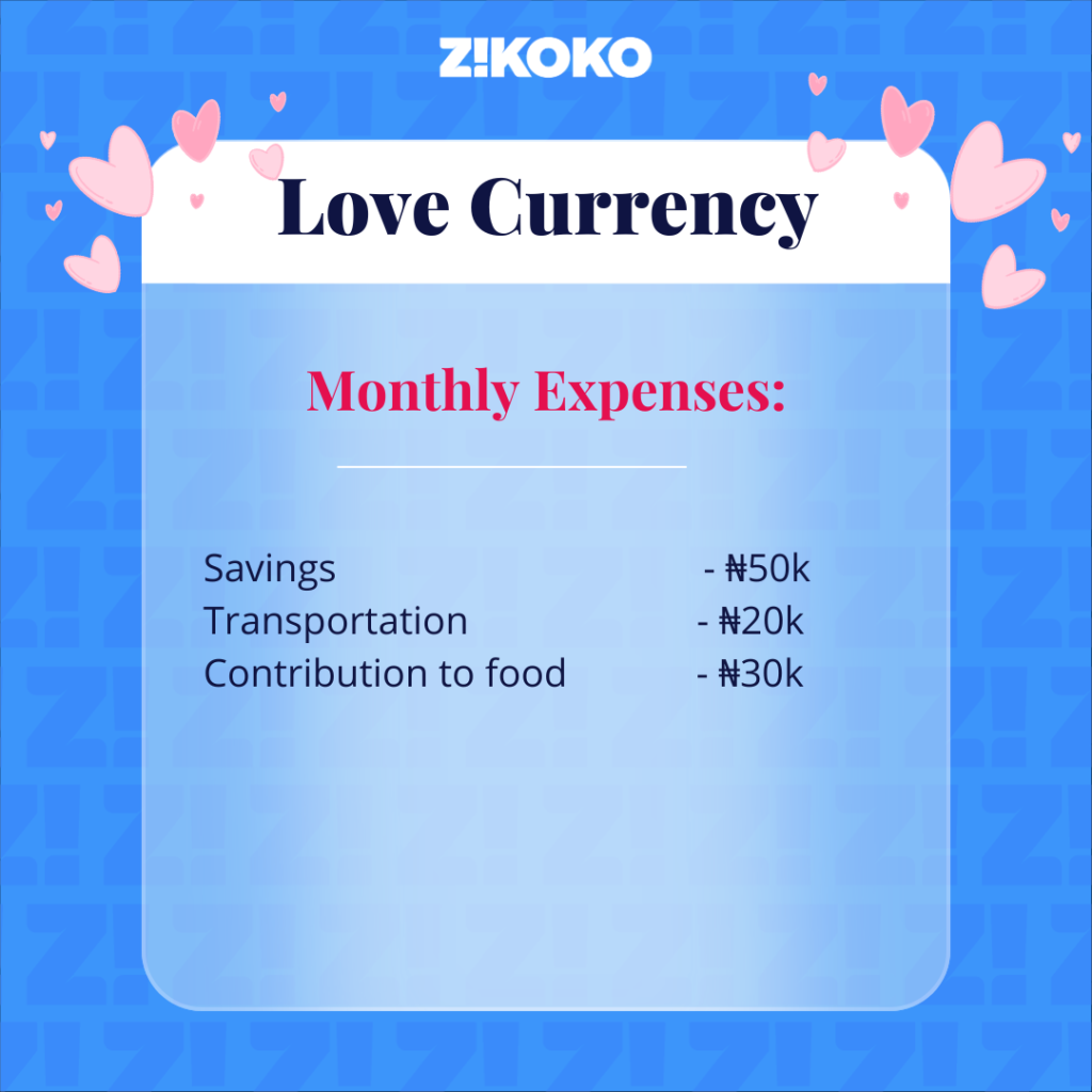However, the dates haven’t been regular because business hasn’t been so great lately, and everything is now expensive. We’re looking to start another business, which is why I’ve been saving ₦50k (half my salary) every month. The remaining ₦50k barely covers food. So right now, we’re just managing that and whatever Timi makes from the business centre.