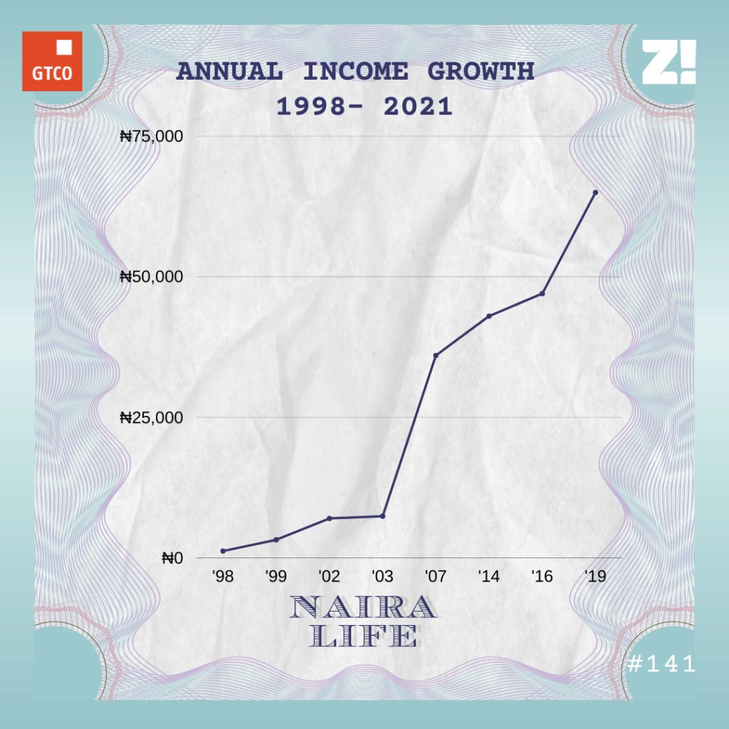My grandfather retired from the mission in 1987, and his pension was ₦47. Before his retirement, his salary was about ₦44 per month. My mum joined the civil service in 1981, but I didn’t know how much she earned until the late 80s or early 90s.  She got into the university and couldn’t always make it to work on salary day. Whenever I was at home, she’d inform her boss,  the headmaster, that I was coming to get it on her behalf. I found out her salary was a little over ₦1000.