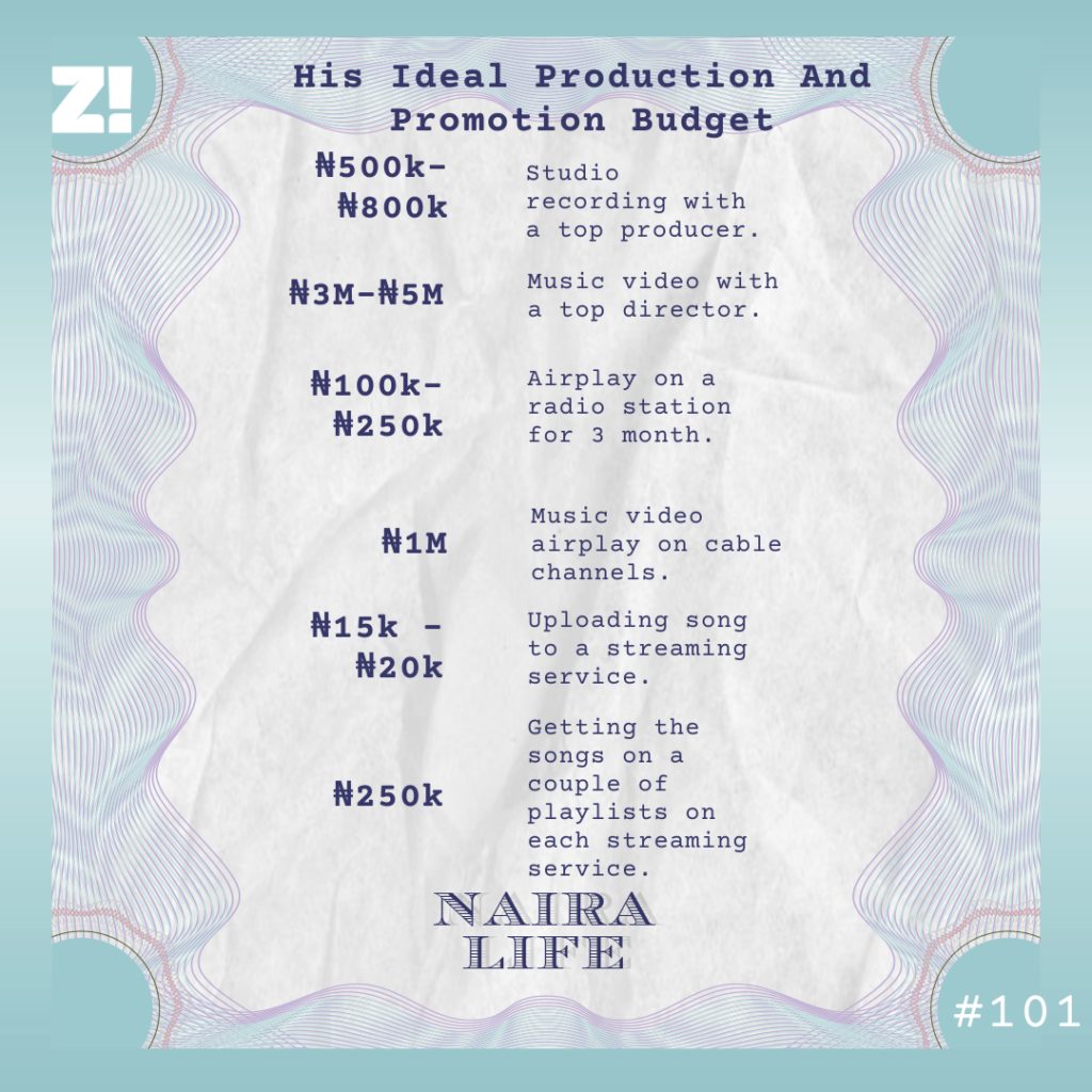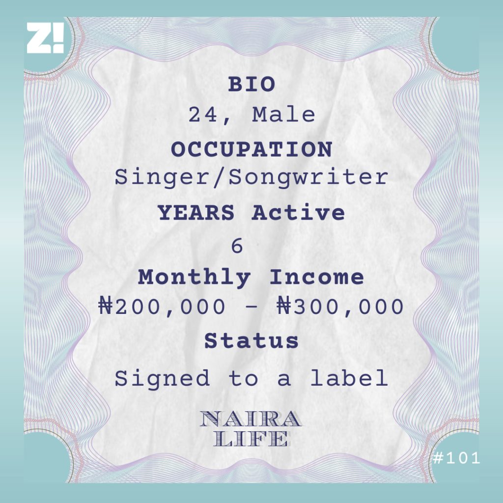 Talent and promotion are two different beasts in the music business. The subject of this week’s story, an up-and-coming artist knows this better than most people. So, how does he earn money in an industry where nothing is guaranteed, and what does his #NairaLife look like?