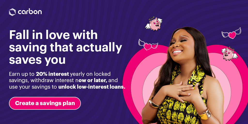 Saving doesn’t stop life from happening. When things come up, Carbon doesn’t force you to choose between progress and survival. Your locked savings keep growing, and you can use it as collateral to access a loan at just 3% interest. It’s saving, built different so you can move different. Create a savings plan here.