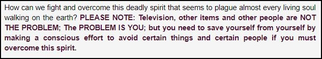 Even though the author has previously pointed out that the spirit of LUST and its modes of transportation (media) are the problems, he starts this chapter by saying this: