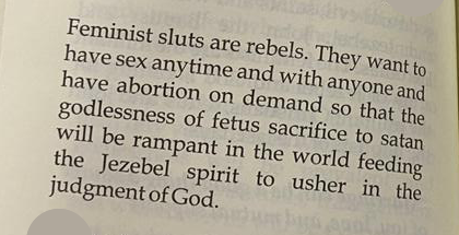 He accuses feminists of being in cahoots with the mainstream media to push for abortion to be made legal so they can have group sex under the influence of alcohol without consequences. He says that women shouldn’t be given all the rights they want because some of those rights are bound to destroy the world.