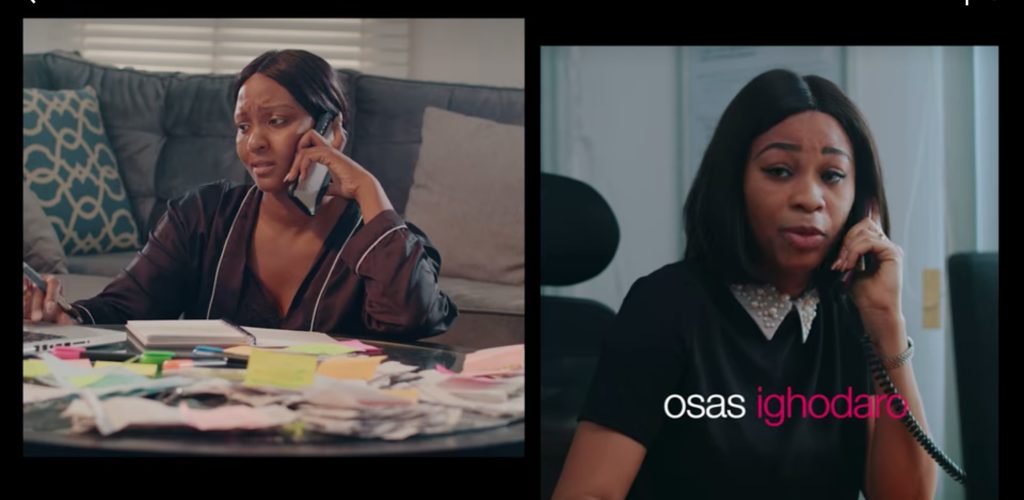 The scene where Zuri (Osas Ighodaro) talks to her account manager on the phone.