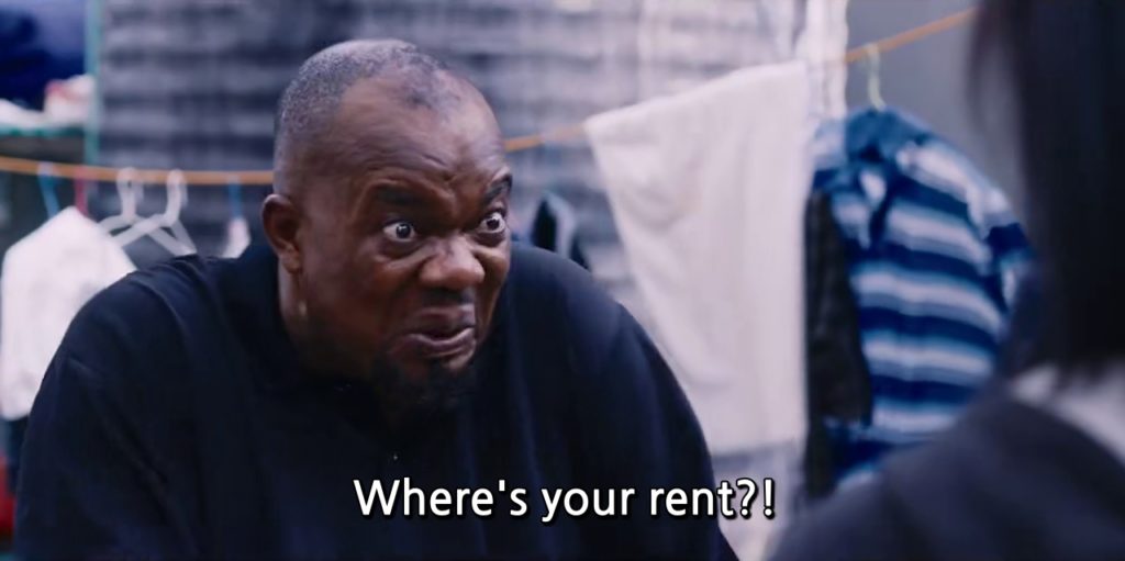 We then cut to a scene of a cult performing a ritual. After chanting some incantato, they set a coffin on fire and push it into the ocean. The movie’s title card pops up and we get a time jump. Nneka (Idia Aisien) is all grown up and fine as hell. She’s also broke as shit, living in a tiny apartment where her landlord hounds her everyday because she’s owing rent…