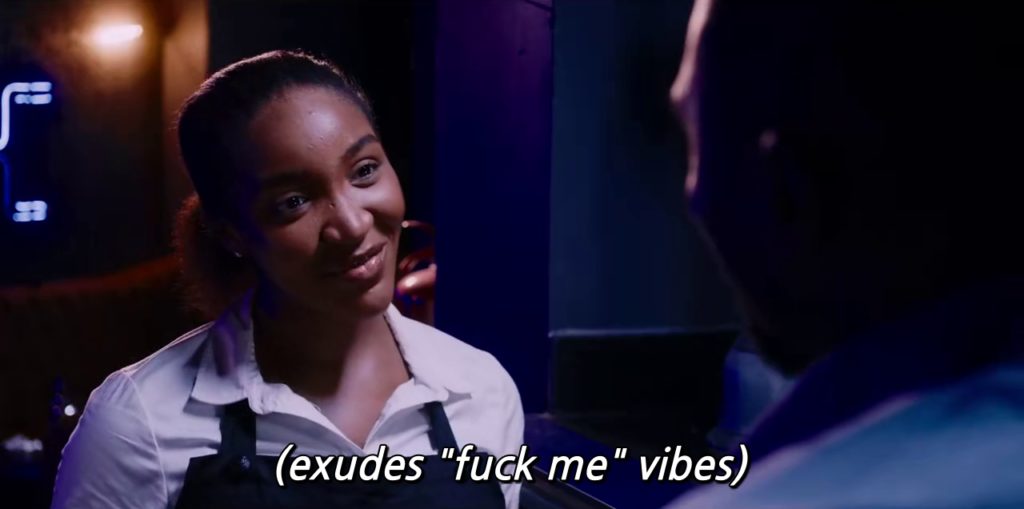 …and works as a waitress at a restaurant with a boss who hates her. In the boss’ defense, it’s established that Nneka is a pretty terrible employee so his hatred is justified. The only good thing Nneka has going for her is her friendship with her coworker named Ada (Bimbo Ademoye) and her short flirt sessions with one of the restaurant’s recurring patrons named Tony (Kenneth Okolie).