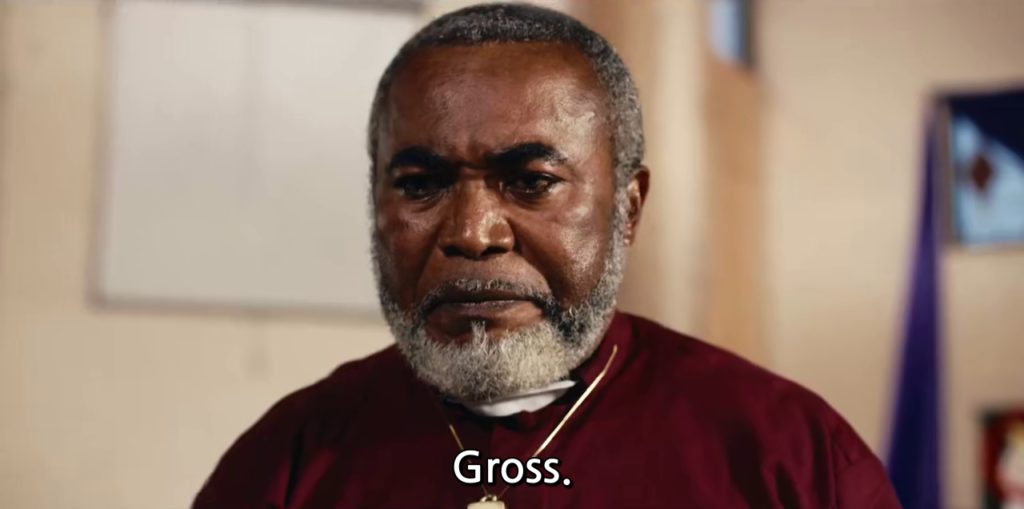 The last living member of the Island Collective is named Anthony (Zack Orji), a pastor Nneka later finds out is Tony’s father. He quit the cult years ago to join the church. She’s initially reluctant to kill him because of her love for Tony but eventually decides to do it. Pastor Anthony paralyses Nneka with church incense and casts the spirit of Queen Mother out of her.