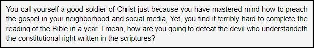 There’s shade hidden somewhere in this mess of a paragraph and we’ll get to that soon. But how do you judge people for missing mid-week church activities because they have to be at work? If they get fired, will you pay their bills?