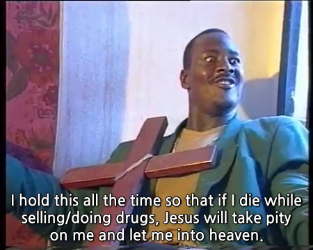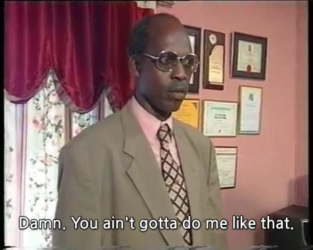 …and pays with a shit ton of cash, a jarring reminder that in the year this movie was made, online banking in Nigeria wasn’t a thing yet.