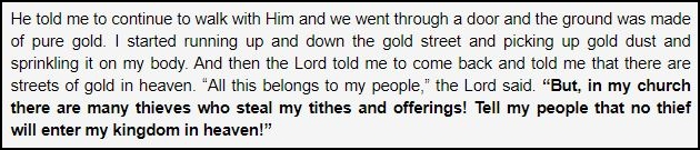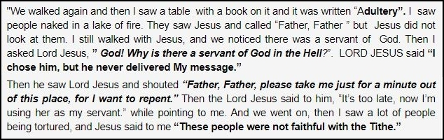 In this chapter, the author claims to have (and promises to reveal) concrete proof that none payment of tithe/offering sends people to hell. But before doing that, he proceeds to explain what tithing means using TWO PARAGRAPHS.