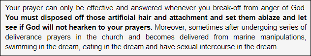 After this, Evangelist Fumilayo gets into the meat of the matter by revealing that there are demonic covenants people unknowingly get into with Satan and the Queen of the Coast whenever they use artificial hair.