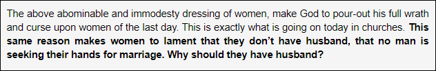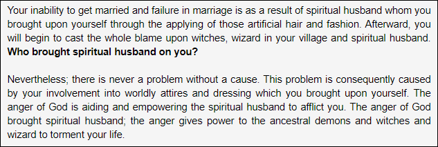 Evangelist Fumilayo ends the books blaming women who seemingly can’t get husbands and women with failed marriages for their misfortune.