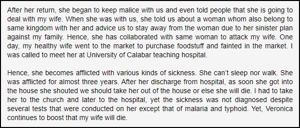 This insane story starts on the 5th of March 2011. Jonathan, a minister in The Lord’s Chosen, returns home to Calabar after a business trip to Lagos. He finds out about a 20-year-old Togolese girl named Veronica who’s just moved into their compound. For some reason, Veronica tells the entire compound that she and all her people back home belong to the marine kingdom. She goes on to tell them that her mother sent her to Nigeria like an African Fresh Prince so the marine kingdom wouldn’t dig their claws deeper in her.