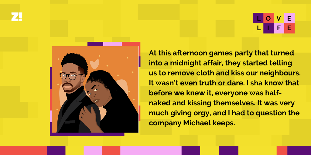 Temi: At this afternoon games party that turned into a midnight affair, they started telling us to remove cloth and kiss our neighbours. It wasn’t even truth or dare. I sha know that before we knew it, everyone was half-naked and kissing themselves. It was very much giving orgy, and I had to question the company Michael keeps.