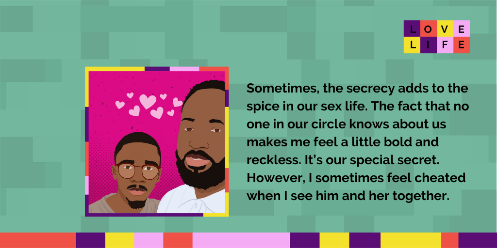 Kene: Sometimes, the secrecy adds to the spice of our sex life. The fact that no one in our circle knows about us makes me feel a little bold and reckless. It’s our special secret. However, I sometimes feel cheated when I see him and her together.