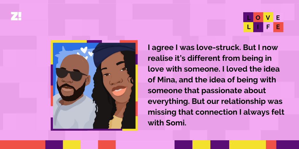 Daniel: I agree I was love-struck. But I now realise it’s different from being in love with someone. I loved the idea of Mina and the idea of being with someone that passionate about everything. But our relationship was missing that connection I always felt with Somi.