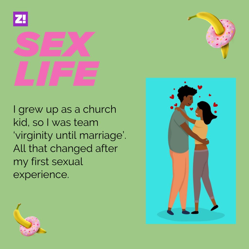 I grew up as a church kid, so I was team ‘virginity until marriage’. All through secondary school, the occasional hug got me so excited. Whenever it happened, I would feel like I was eating the forbidden fruit. Yes, I’m still talking about just hugging.