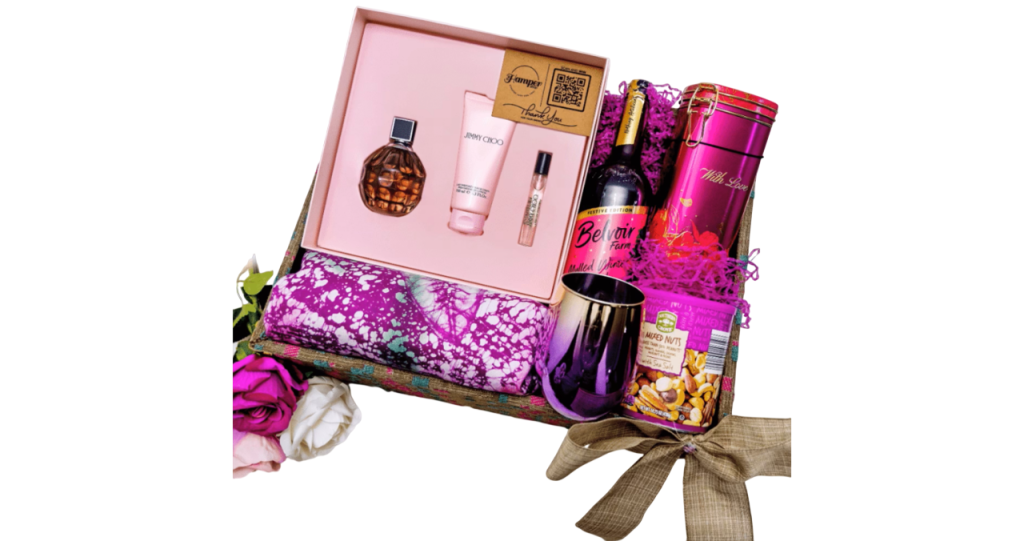 When a single gift does not feel sufficient, a curated box allows you to combine items she genuinely loves, from treats to beauty picks paired with a romantic message. The Hamper Shop prepares boxes ranging from ₦70,000 to ₦800,000. For more affordable options, you can explore Eloquent Gift or curate one yourself.