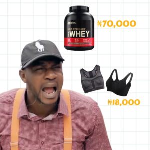 And let’s not forget supplements. I would take several types — the pre-workout, inter-workout and post-workout supplements. They contain whey protein, creatine, glutamine, mass gainer, omega 369, etc., and cost about ₦150k every three months.